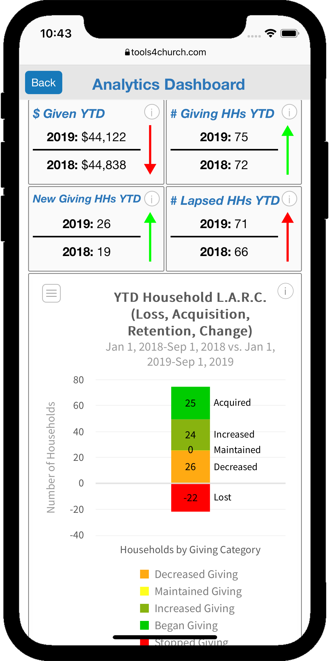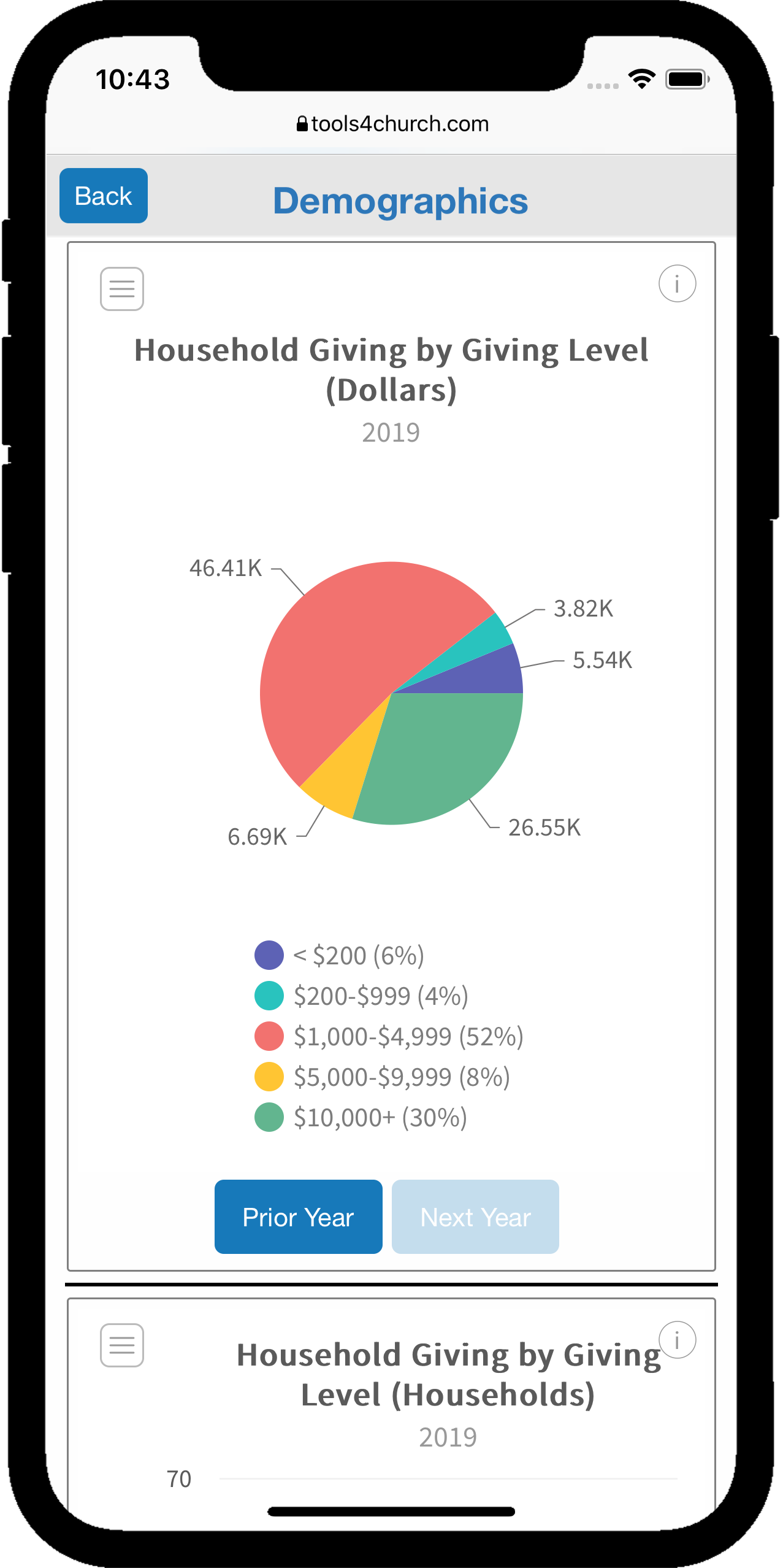 View giving demographics and trends in easy-to-understand charts and graphs. Identify new, lapsed, and top givers with a click.